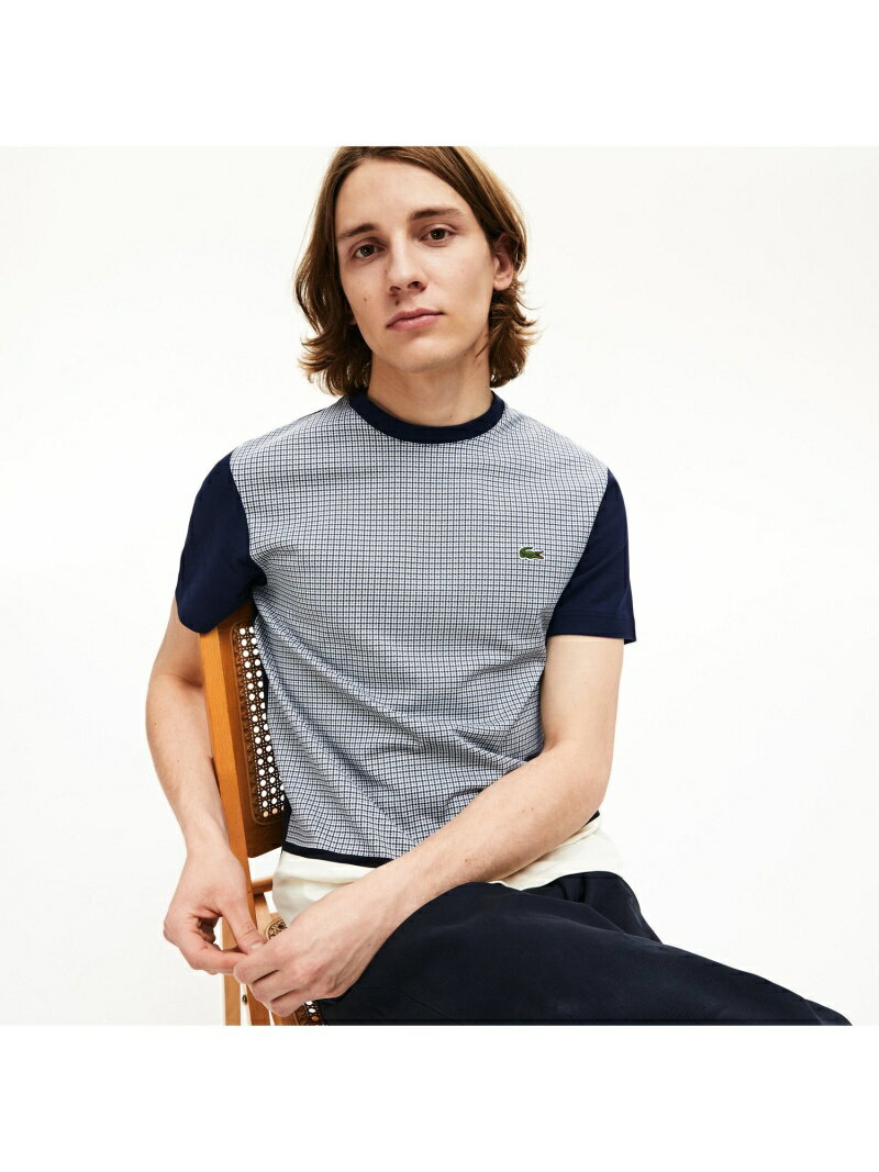 LACOSTE(ラコステ)ハウンドトゥースパネルブロッキングTシャツトレンド不問で着回せる、レギュラーフィットシルエットのクルーネックTシャツ。